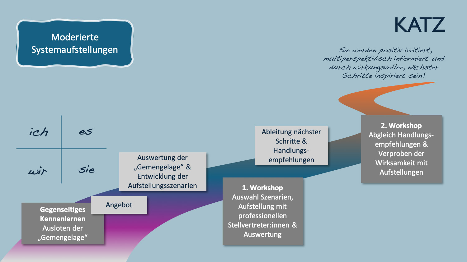Die KATZ begleitet Menschen und Organisationen auf dem Weg zu mehr Klarheit, Wirksamkeit und Zukunftsfähigkeit. Wir arbeiten systemisch, intuitiv und konsequent lösungsorientiert.